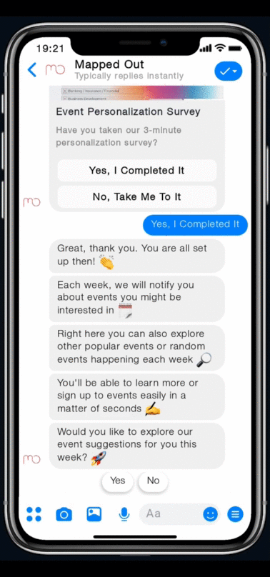 We suggest events that best suit your individual interests and preferences each week for you. We base this on a short survey you fill out when you sign up